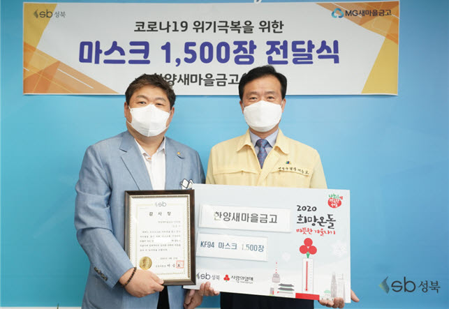 한양새마을금고 김응수 이사장은 “앞으로도 따뜻한 성북구를 만들기 위해 구민과 함께하는 서민들의 대표 금융기관으로서의 역할에 앞장서겠다. 어려운 시기다 보니 마스크가 가장 필요할 것 같아서 준비하게 되었다. 어려운 이웃을 위해 사용해 달라”고 밝혔다.