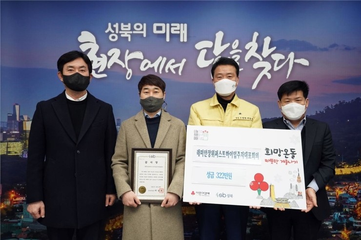 소외이웃을 위해 입주민이 십시일반 성금을 모은 공동주택도 있다. 장위3동 래미안장위퍼스트하이아파트 입주민은 십시일반으로 성금 322만원을 모아 28일 성북구에 전했다.