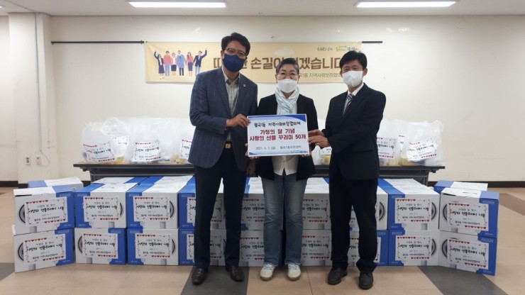 한편 ‘효담은 꾸러미’는 코로나19의 장기화로 가족의 방문이 어려워진 상황에서 더욱 소외감을 느끼실 저소득 어르신을 각 통별 복지통장(43명)이 1가구씩 추천해 보장협의체 위원이 추천한 7가구를 가가호호 방문하여 안부인사와 함께 꾸러미 전달됐다. 카네이션을 가슴에 단 한 어르신은 “딸, 아들보다 낫다”며 감사의 마음을 전하기도 했다.