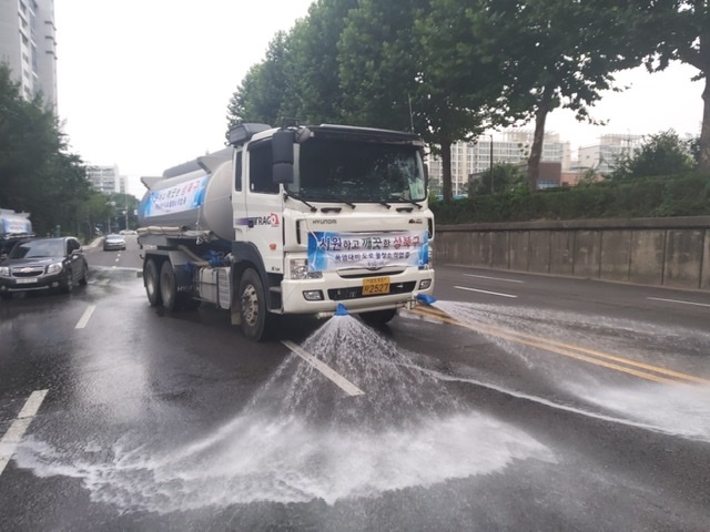 구는 폭염으로 인한 도심 열섬화 저감을 위해 7월 말부터 8월 중순 중 10일간 관내 주요 간선도로에 도로 노면 살수차량을 추가 운행한다고 밝혔다.