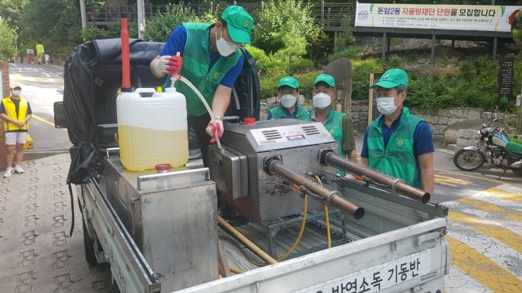 성북구(구청장 이승로) 돈암2동 새마을지도자협의회(회장 차경환) 회원들이 지난 7월 5일 돈암2동 민관합동 특별방역단 발대식 개최 이후로 한 여름의 무더위에도 불구하고 매주 4회(월, 수, 목, 금) 방역 봉사를 해오고 있어 주민들의 큰 호응을 얻고 있다.