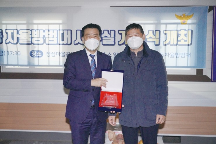 이날 장덕식 장위3동자율방범대장은 사무실을 개소해주신 이승로성북구청장에게 감사패를 전달하며 감사의 마음을 전했다.