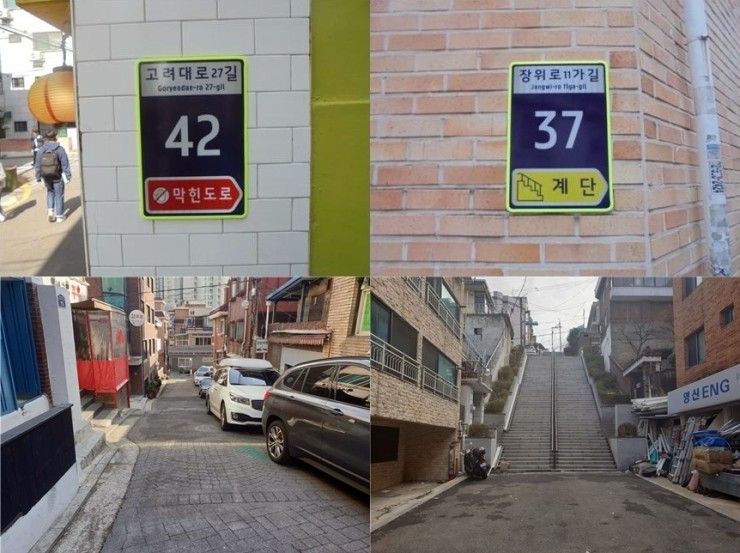 막다른 골목이나 계단으로 이어지는 등 차량통행이 불가능한 도로의 골목길 입구에 ‘막다른 도로’, ‘계단도로’를 표시한 기초번호판을 부착한 것이다.
