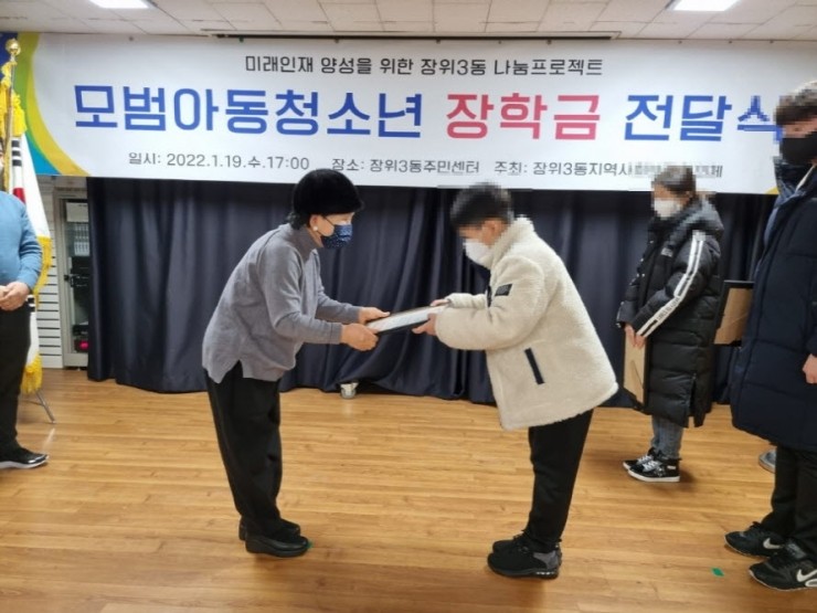 이날 전달된 장학금은 미래인재양성을 위한 장위3동 나눔프로젝트의 일환으로, 평소 솔선수범하여 모범이 되는 아동청소년 8명을 선발하여 각 20만 원씩 총 160만원을 지원했다.