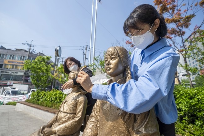 지난 2일 실외 마스크 의무 조치가 해제됨에 따라 성북구청 직원이 성북동 만해공원을 찾아 만해동상이 쓰고 있던 마스크, 분수마루광장을 찾아 한·중 평화의소녀상의 마스크를 벗겨졌다.