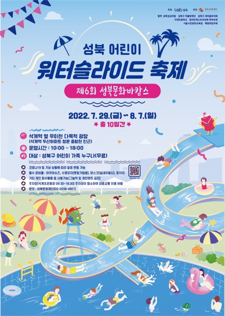 초대형 슬라이드 외에도 대형, 중형, 어린이 슬라이드까지 준비했다. 다양한 먹거리와 공연은 물론 페이스페인팅, 체험놀이 등 즐길꺼리도 풍부하게 마련했다. 자녀를 위해 부모가 성북문화바캉스를 찾은 것이 아니라 남녀노소 온 가족 모두가 신나게 즐기며 폭염 스트레스를 날릴 수 있도록 준비한 것이다. 성북구는 무엇보다 여러 이유로 인해 피서를 가지 못하는 아동·청소년, 부모에게 소중한 추억을 안길 것으로 기대하고 있다.