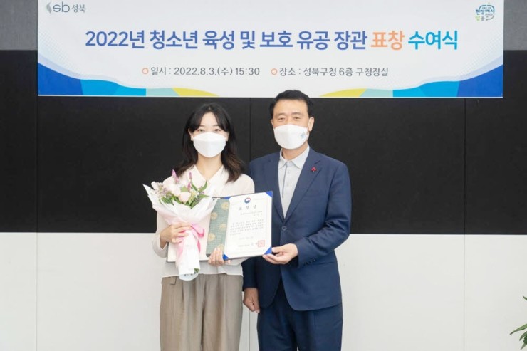 성북구(구청장 이승로)청소년지원센터 꿈드림 소속 청소년이 「2022년 청소년 육성 및 보호 유공」 여성가족부 장관표창을 수상했다.