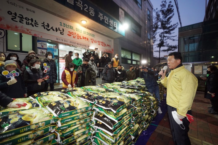 얼굴 없는 천사가 2023년 계묘년에도 어김없이 서울 성북구 #월곡2동 주민센터에 20kg 포장쌀 300포를 보냈다. 2011년 시작해 13년째로 2023년 올해까지 총 3,900포, 쌀 무게 78톤, 싯가 2억여 원에 이르는 규모이다.
