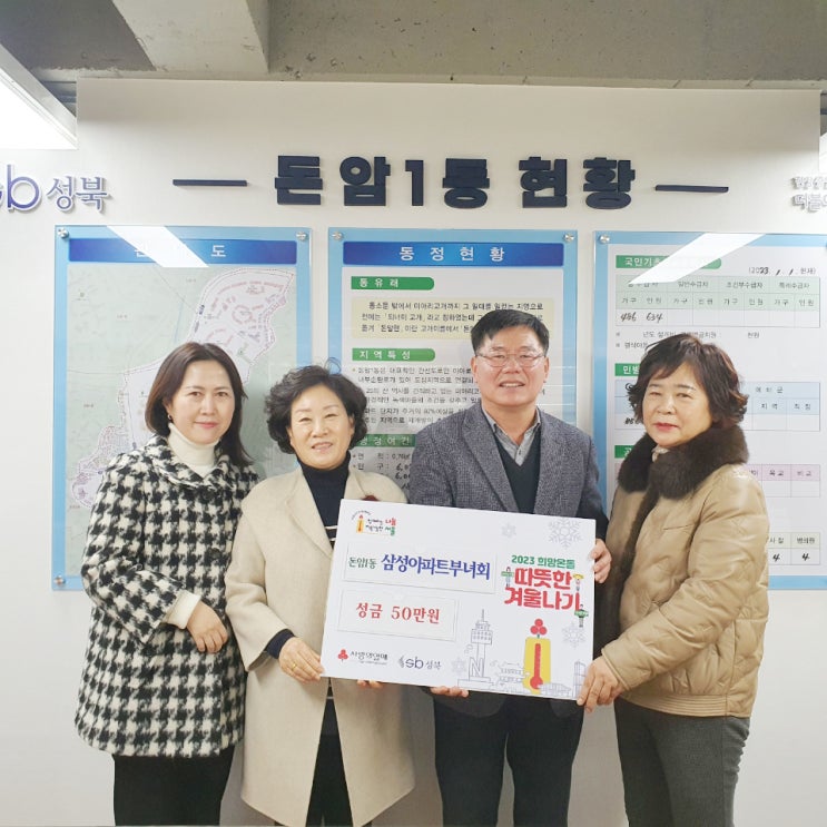 이외에도 #마을안전협의회, 돈암삼성아파트부녀회, 통장협의회 등 많은 단체 및 개인 기부가 새해부터 쉼 없이 이어져 어려운 이웃을 먼저 생각하는 따뜻한 마음이 확산되고 있다.