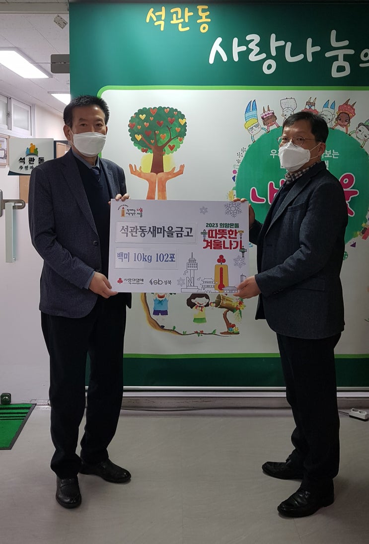 지난 19일 석관동 새마을금고(이사장 김흥준)에서 지역 내 어려운 이웃을 돕기 위해 “사랑의 좀도리 운동”을 진행해 모은 백미 10kg짜리 102포를 석관동주민센터(동장 정창섭)에 기탁했다.