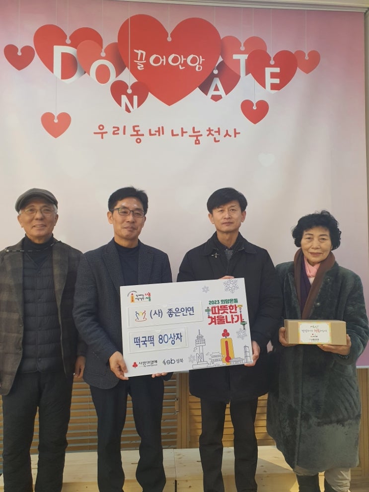 안암동에서는 지난 17일 대한불교조계종 포교사단 ‘사단법인 좋은인연’에서 떡국 떡 80상자를 전달하였다고 전했다. 좋은인연은 2006년 안암동에서 설립 이후 끊임없는 지역사회 기부 및 나눔 활동을 이어가며 지역복지의 한 축을 담당하고 있다. ‘사단법인 좋은인연’ 김영석 이사장은 “경기가 불황임에도 어김없이 찾아오는 명절에 지역 내 홀몸 어르신들의 안부가 걱정된다”며 “질 좋은 쌀로 잘 찧은 떡이니 떡국을 만들어 드시며 행복한 명절 지내시기를 바란다”는 소망을 전했다.