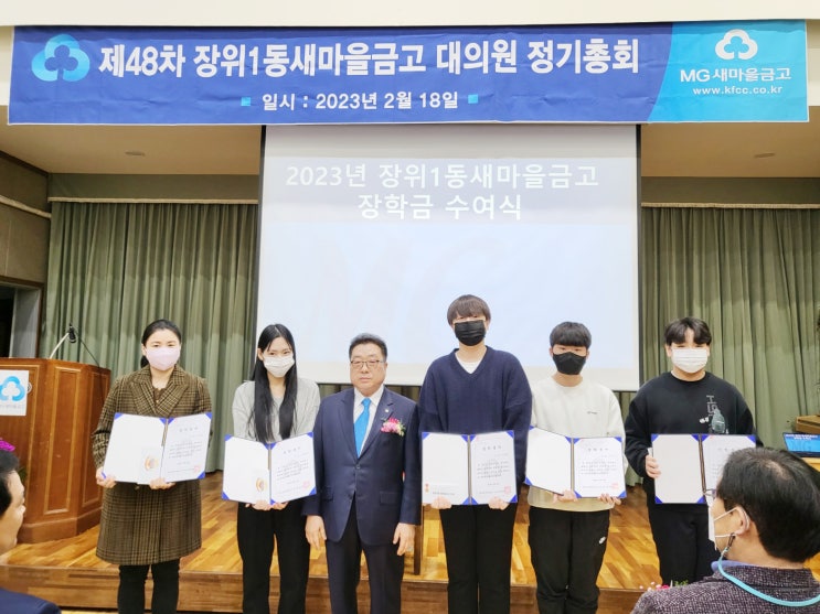 이어서 장학금 전달식도 가졌다. 이번에 전달된 장학금은 총 250만 원의 규모로 1인당 50만 원씩 총 5명의 중·고, 대학생에게 전달하였다. 금고에서는 2007년부터 현재까지 66명의 관내 학생들에게 총 22,950,000원의 장학금을 지급해오고 있다.