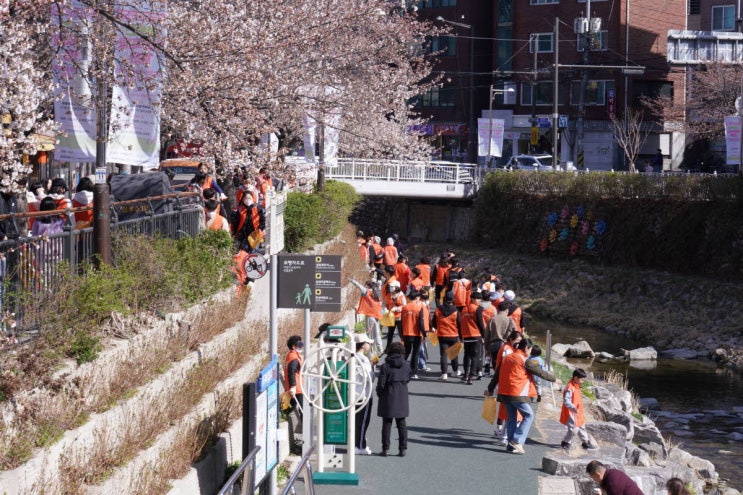 이날 첫 봉사활동에서 참석자들은 지하철 4호선 한성대입구역 분수마루에서 보문동주민센터까지 10월까지 진행되는 성북구 자율 환경정비 봉사프로그램 ‘성북천결(川潔)’의 시작을 알리는 3월 26일 ‘다함께 성북천결(川潔)’ 행사에서 자원봉사자들이 성북천 일대환경정비 활동을 벌이고 있다.