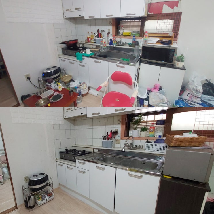 어르신의 가정은 수납공간이 부족해 물건들이 집안에 쌓여있었다. 여기저기 흩어져있는 약 봉투는 한곳으로 정리해 복용 및 관리가 잘되도록 했다. 어르신이 거동이 불편하신 점을 고려해 기존의 수납장을 낮은 위치로 조정했다. 추가적으로 정리 용품을 가져와 집안의 여기저기 쌓여있던 물건들을 깔끔하게 수납했다.