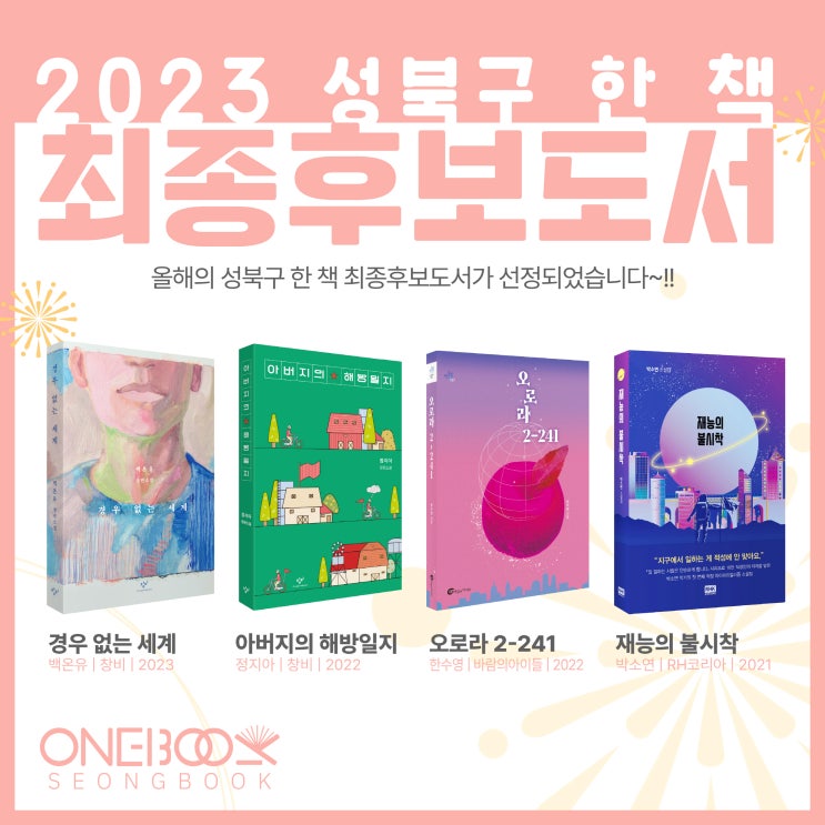 2023년 성북구 최종 후보도서는 ▲『경우 없는 세계』(백온유), ▲『아버지의 해방일지』(정지아), ▲『오로라 2-241』(한수영), ▲『재능의 불시착』(박소연) 4권이다.
