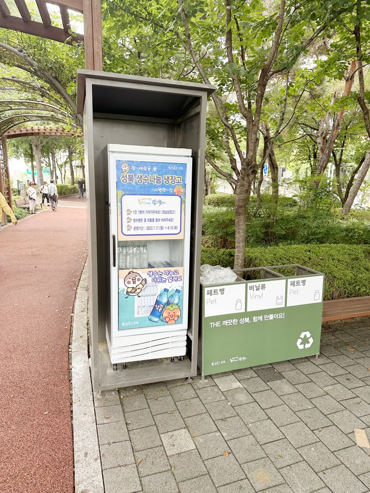 생수 냉장고는 총 11개소 ▲성북천(성북구청 바람마당) ▲개운산 근린공원(성북구의회쪽 입구) ▲성북근린공원 하늘한마당 ▲북한산 근린공원(생태숲) ▲정릉천(상류-어울림마당 입구) ▲월곡잔디구장(1구장) ▲중랑천 다목적 스탠드 ▲석관동(석계초 앞 산책로) ▲청량근린공원 어르신건강마당 ▲정릉천(하류-종암동 마을공원 인근) ▲우이천 입구(장위 실버 복지센터 뒤) 에 설치됐다.