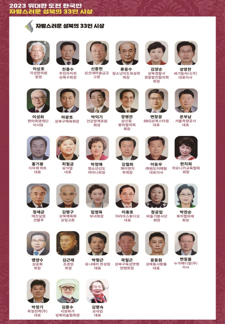 도전 한국인! 자랑스러운 성북의 33인 선정
