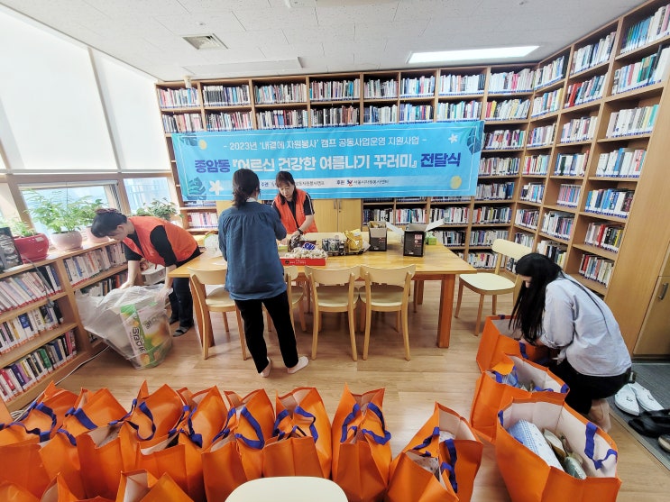 종암동 자원봉사캠프(회장 박미신) 주최로 열린 ‘어르신 건강한 여름 나기 꾸러미’ 전달식을 위해 자원봉사캠프 활동가들은 사전회의에서 결정한 여름 이불, 전복죽, 김 등의 식품 등 품목을 미리 구매하고, 행사 당일 오전 일찍 종암동 주민센터에 모여 꾸러미 만들기 작업을 했다.