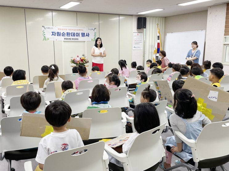 돈암2동 주민센터는 어린이들이 직접 자원순환데이 행사에 참여할 수 있도록 관내 유치원, 어린이집에 널리 홍보했다. 느티나무 어린이집, 가람 어린이집, 아띠 어린이집의 원아 50명이 이날 행사에 참여했다.