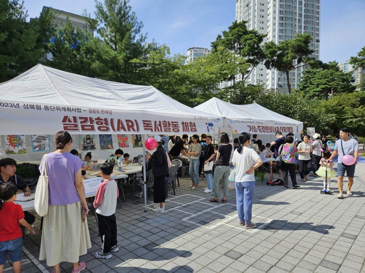 한편 건너편 늘푸른어린이공원에서는 커피점토 화분 만들기, 키오스크 체험, VR/AR 체험, AR 기반 독서활동체험, 야외독서쉼터, 유아놀이마당 등 다양하고 흥미로운 야외체험부스가 운영돼 많은 주민들의 눈길을 끌었다.
