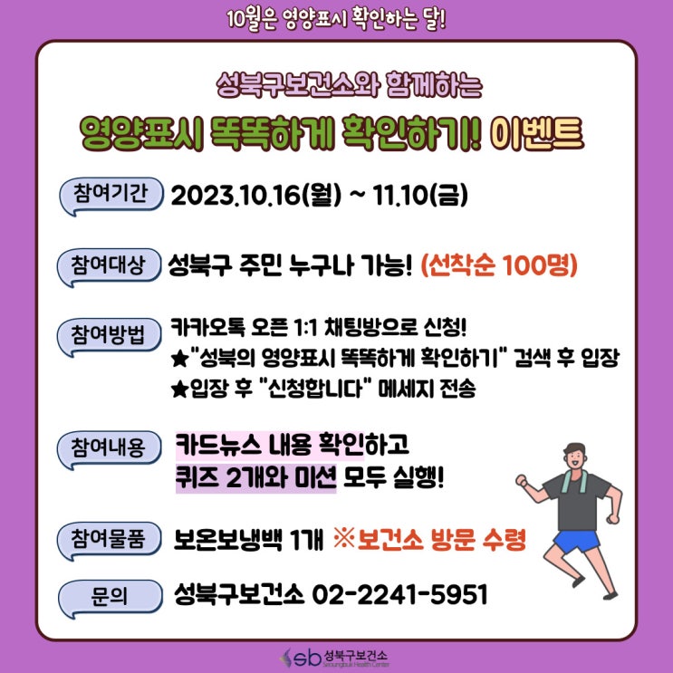 성북구, 영양표시 똑똑하게 확인하기 이벤트