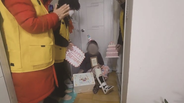 생신축하를 받은 안**어르신은 “다리를 다쳐서 꼼짝없이 집안에 갇혀있는 신세가 되어 있는데 내 생일이라고 하여 이웃들이 이 추운 날씨에도 집까지 와주어 생일을 축하해주니 고마운 마음을 어떻게 전해야 할지 감사의 마음을 표현할 길이 없다”라고 말하며 봉사자에게 감사의 인사를 전했다.