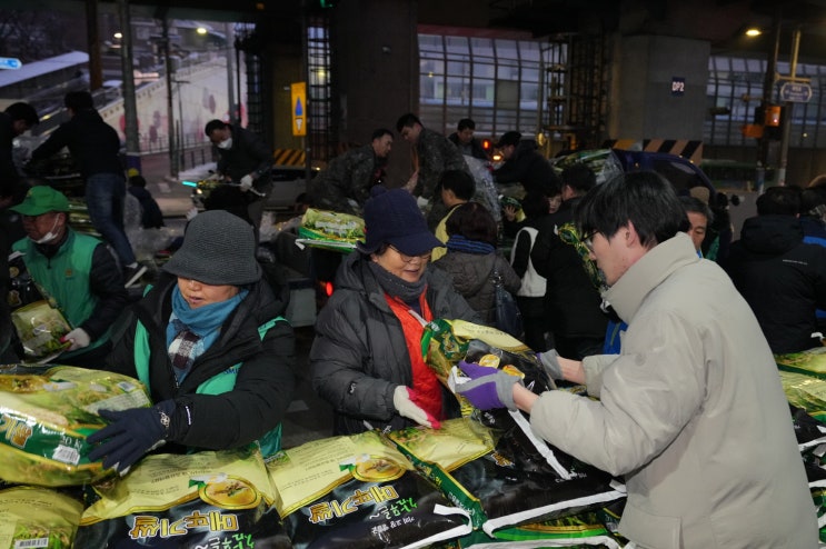 천사의 쌀 300포를 실은 트럭을 맞이하고 쌀을 내리는 일은 이제 월곡2동의 연례행사가 되었다. 해마다 천사의 쌀이 도착하는 새벽이면 월곡2동주민센터 앞은 공무원뿐만 아니라 자원봉사자, 산책하던 주민, 군인 등이 입김을 내며 쌀을 나르는 진풍경이 펼쳐진다. 올해도 100여 명이 쌀을 내리며 천사에 대한 이야기꽃을 피웠다.