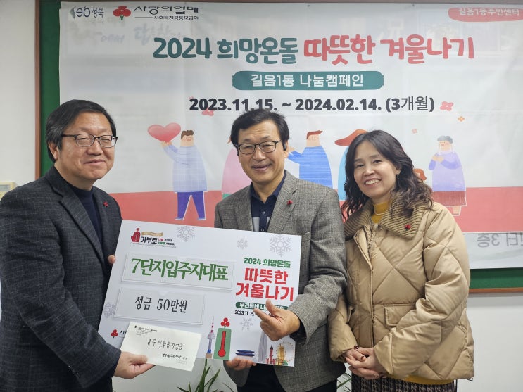 성북구(구청장 이승로) 길음1동은 12개의 아파트 단지로 구성된 길음뉴타운으로 단지별 아파트 입주자 대표회의를 통해 기부 릴레이가 매해마다 이어지고 있다.