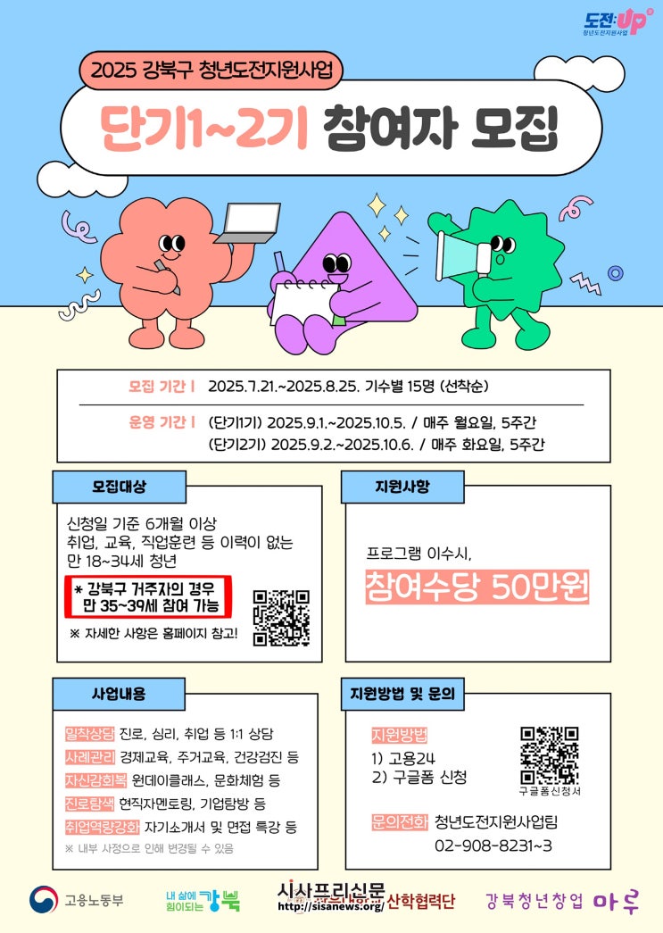 강북구, 청년도전지원사업 단기 프로그램 참여자 모집