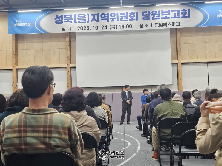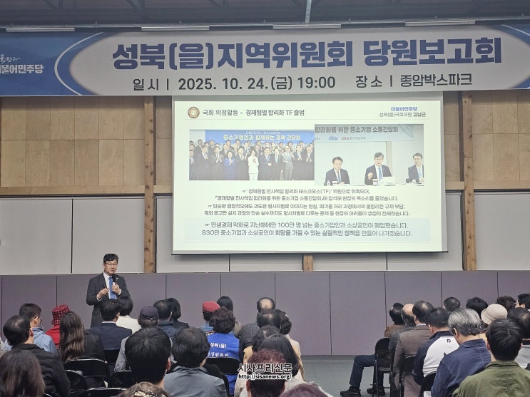(시사프리신문=김영국 기자) 더불어민주당 성북(을) 지역위원회는 지난 10월 24일 오후 7시, 성북구 종암동 박스파크에서 ‘2025 더불어민주당 성북(을) 당원보고회’를 개최했다.