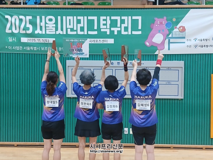 (시사프리신문=정진만 기자) 11월 1일 강서구 마곡레포츠센터에서 열린 ‘2025 서울시민리그 탁구리그’에서 성북구 대표 하루카클럽A팀이 여자 단체전 우승을 차지했다.