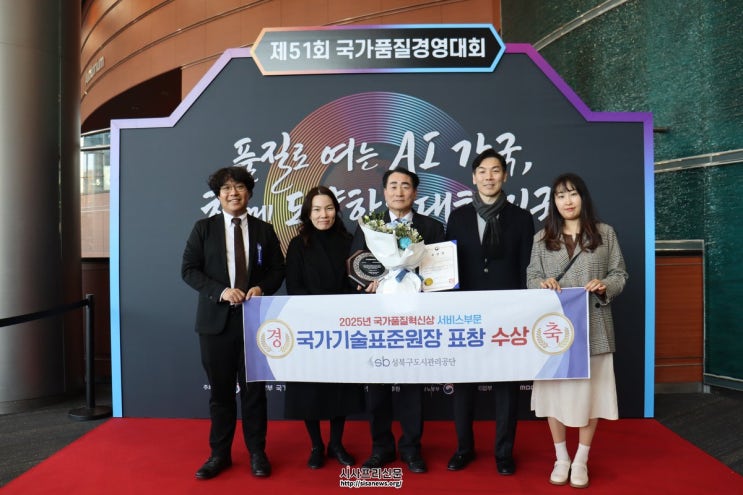성북구도시관리공단(이사장 박근종)은 지난 11월 19일 삼성동 코엑스 오디토리움에서 산업통상자원부가 주관하는 ‘2025년 국가품질상 국가기술표준원장 표창’을 수상했다고 밝혔다.