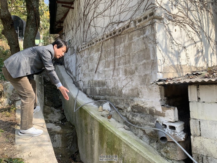 정 의원은 구청 관계 부서와 함께 물 유입 경로와 주변 지형을 확인하며 “이런 민원은 시기를 놓치면 피해와 불안이 더욱 커진다”고 강조했다.