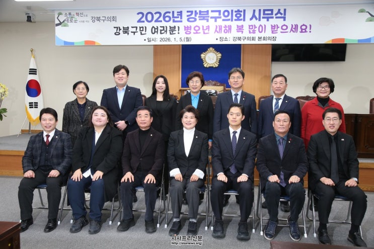 (시사프리신문=유영일 기자) 강북구의회(의장 김명희)는 병오년 새해를 맞아 지난 1월 5일(월) 의회 본회의장에서 시무식을 개최하고, 국립 4.19민주묘지 참배를 통해 2026년 병오년 새해의 힘찬 출발을 알렸다.