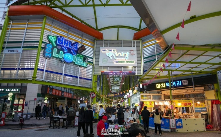 중소벤처기업부의 문화관광형시장 육성사업에 참여 중인 백년시장은 1년 차 사업으로 야시장 운영을 중심으로 한 특화 프로그램을 추진했다. 네온사인과 미러볼, 모바일 DJ부스 등을 활용한 레트로 콘셉트의 공간 조성과 야시장 메뉴 개발 콘테스트 등을 통해 시장 방문 유도와 경쟁력 제고에 나섰다.