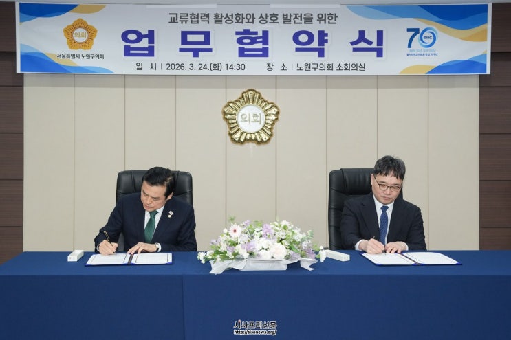 (시사프리신문=정진만 기자) 노원구의회(의장 손영준)는 지난 24일 하계동에 위치한 노원을지대학교병원(병원장 김재훈)과 의회 구성원의 건강 증진 및 상호 발전을 위한 업무협약(MOU)을 체결했다.