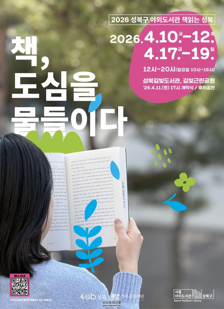 성북구(구청장 이승로)와 성북문화재단이 2026년 상반기 『성북구 야외도서관 책읽는 성북–책, 도심을 물들이다』를 4월 10일부터 4월 19일까지 매주 금요일부터 일요일까지 성북길빛도서관과 길빛근린공원 일대에서 운영한다.
