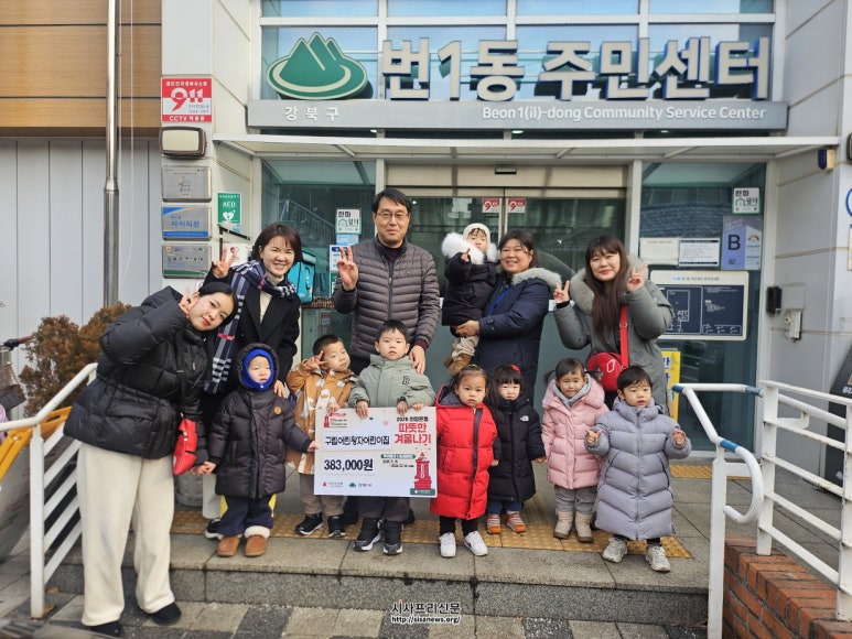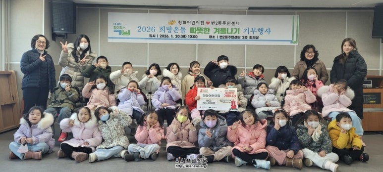 청화어린이집·구립번2동어린이집, 따뜻한 겨울나기 동참 청화어린이집 전달식 사진 강북구(구청장 이순희) 번2동은 관내 어린이집들이 ‘2026 희망온돌 따뜻한 겨울나기’ 캠페인에 동참하며 지역사회에 훈훈한 온기를 전하고 있다고 밝혔다. 청화어린이집 원아들과 교...