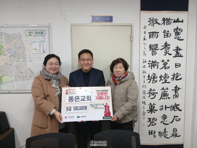 인수동·우이동, 동은교회로부터 따뜻한 겨울나기 성금 기탁받아 20년 넘게 이어온 이웃사랑... 매년 명절마다 저소득 70가구에 꾸러미 나눔도 인수동·우이동, 동은교회로부터 따뜻한 겨울나기 성금 기탁받아 강북구(구청장 이순희) 인수동과 우이동은 지난 2월 3일과 6...