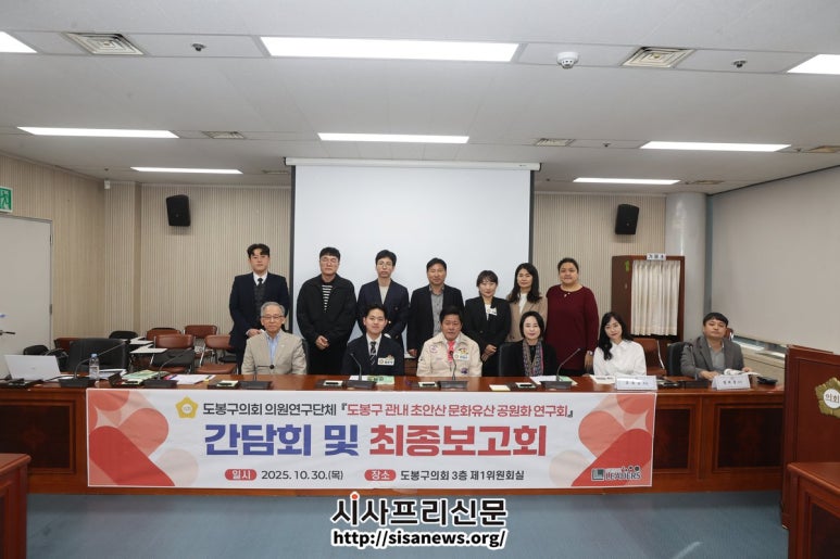 도봉구의회 의원연구단체, 최종보고회 등 개최 ‘도봉구 관내 초안산 문화유산 공원화 연구회’ ▲도봉구의회 의원연구단체, ‘도봉구 관내 초안산 문화유산 공원화 연구회’ 최종보고회 기념사진 (시사프리신문=유영일 기자) 도봉구의회(의장 안병건) 의원연구...