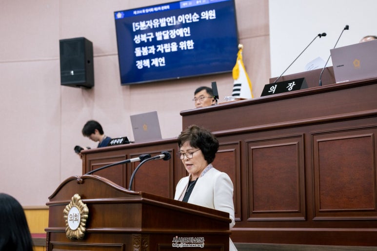 성북구의회 이인순 의원, 5분 자유발언 성북구, ‘발달장애인 돌봄·자립’ 위한 정책 지원 시급 성북구의회 이인순 의원 “주간이용시설 0개, 돌봄 인프라 불균형 심각” ▲성북구의회 이인순 의원 (시사프리신문=김영국 기자) 성북구의회 보건복지위원...