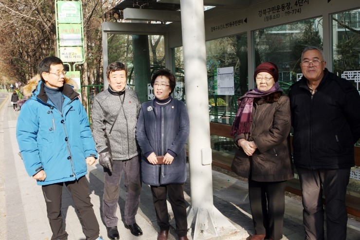 강북구의회 김명숙 의원은 지난 6일 번2동에 위치한 주공아파트 4단지 강북구민운동장 앞 버스 정류장 승차대 신설 현장을 찾아 점검하는 현장 활동을 실시했다. 이번에 신설된 4단지 주공아파트(강북구민운동장) 앞 버스 정류장 승차대는 지난해 3월 김명숙 의원이 ...