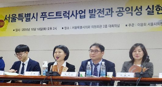지난 18일 화요일 오후 2시, 서울시의회 이윤희 의원과 서울시 푸드트럭민간네트워크의 주관으로 서울시의회 의원회관 2층 대회의실에서 ‘서울특별시 푸드트럭사업 발전과 공익성 실현 방안’을 주제로 푸드트럭 관계자 및 서울시 공무원 등이 참석한 가운데 토론...