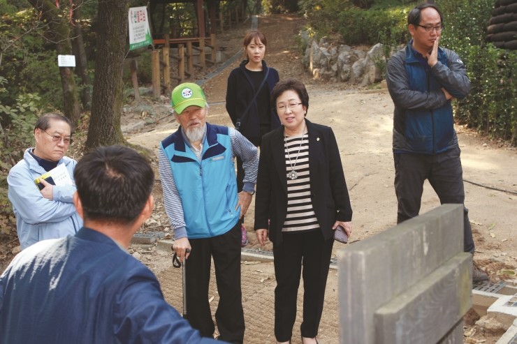 강북구의회 김명숙 의원은 지난 12일 강북구민의 휴식처인 오동근린공원 내 족구장 신설에 따른 시설 점검과 ‘멋진 사나이(이진호 작사)’ 노래비 설치 위치 등을 확인하는 현장 활동을 펼쳤다. 도심 속 쾌적한 자연 휴식 공간의 기능과 아이들에겐 생생한 자연 체험...