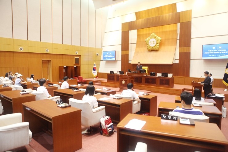 도봉구의회(이근옥 의장)는 지난 10일 서울외국어고등학교 학생 7명이 참여한 청소년 모의의회 체험학습을 개최했다. 먼저 본회의장에서 국민의례, 청소년 학생대표 선서, 이근옥의장의 환영인사 및 의원소개와 회의진행 절차 등에 대한 설명을 듣는 순으로 입교식...