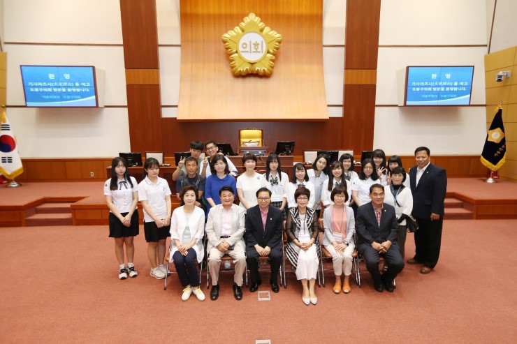 도봉구의회(의장 이근옥) 이성희 운영위원장은 지난 달 26일 일본 지바현 기사라즈시 동 여고와 서울외국어고등학교 학생을 초청해 우리나라의 지방자치를 소개하는 시간을 마련했다. 이날 오전 도봉구의회에서 기사라즈시 동 여고 학생 6명과 서울외고 학생 ...