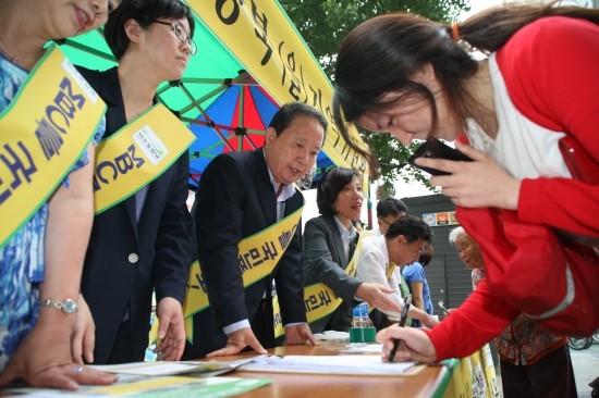 민주통합당 강북(을) 지역위원회가 지난 달 29일 오후 5시부터 2시간동안 미아삼거리역 주변에서 ‘MBC 김재철 사장 퇴진 촉구’서명운동을 대대적으로 전개했다. 이날 유대운 국회의원을 비롯해 강북구의회 박문수·이영심·최선 의원, 안광석 전 의원 ...