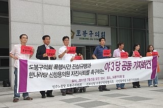지난5일 오전 10시 도봉구의회 앞에서 민주노동당도봉구위원회, 진보 신당도봉구...