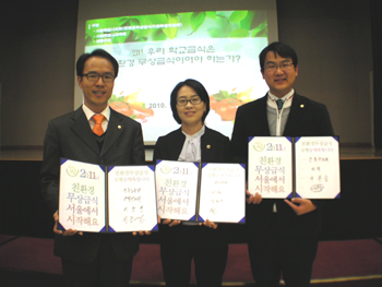 지난 9일, 성동구청 대강당에서는 곽노현 서울시교육감, 허광태 서울시의회의장, 고재득 구청장협의회회장, 서울시의원 및 자치구 구의원, 서울친환경무상급식추진운동본부 관계자 등이 참석해 친환경 무상급식 실행을 위한 서울공동협약을 맺었다. 공동협약서는 친환경 무상급식...