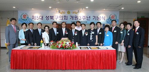 성북구의회, 5대의회 개원 3주년 기념행사 가져 창의적이고 모범적인 의회 운영으로 구민의 권익보호 최선 다짐! 성북구의회(의장 정철식)는 지난 1일 오전 10시부터 의회청사 로비에서 의원과 각 단체장 등이 참석한 가운데 제 5대의...